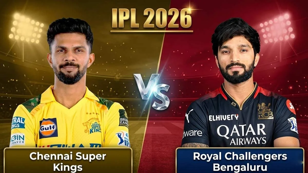 IPL 2026 માં આજે રોયલ ચેલેન્જર્સ બેંગ્લોર અને ચેન્નાઈ સુપર કિંગ્સ ટકરાશે. બે ટીમો બેંગ્લોરના એમ. ચિન્નાસ્વામી સ્ટેડિયમમાં ટકરાશે. RCB અને CSKનો ઇતિહાસ સમૃદ્ધ છે, અને ચાહકો દર વર્ષે તેમને ટકરાતા જોવા માટે ઉત્સાહિત છે. આ મુખ્યત્વે એમએસ ધોની અને વિરાટ કોહલીને કારણે છે. ધોની પગની ઘૂંટીના સ્નાયુઓના ખેંચાણને કારણે બે અઠવાડિયા માટે બહાર છે અને RCB સામે રમી શકશે નહીં. ચાલો મેચ પહેલા બંને ટીમોની ટીમો, પિચ રિપોર્ટ, હેડ-ટુ-હેડ રેકોર્ડ અને હવામાન પરિસ્થિતિઓ પર એક નજર કરીએ.
