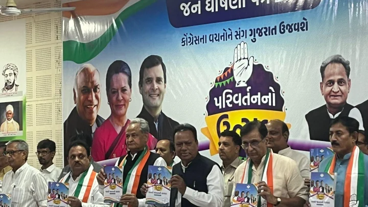 કોંગ્રેસે શનિવારે અમદાવાદમાં ગુજરાત ચૂંટણી માટે પાર્ટીનો મેનિફેસ્ટો બહાર પાડ્યો હતો. જેમાં 10 લાખ સરકારી નોકરીઓ, ખેડૂતોની લોન માફી અને દર મહિને 300 યુનિટ સુધી મફત વીજળી આપવાનું વચન આપ્યું હતું. કોંગ્રેસે તેના ઢંઢેરામાં ઊંચા દાવા કર્યા છે,